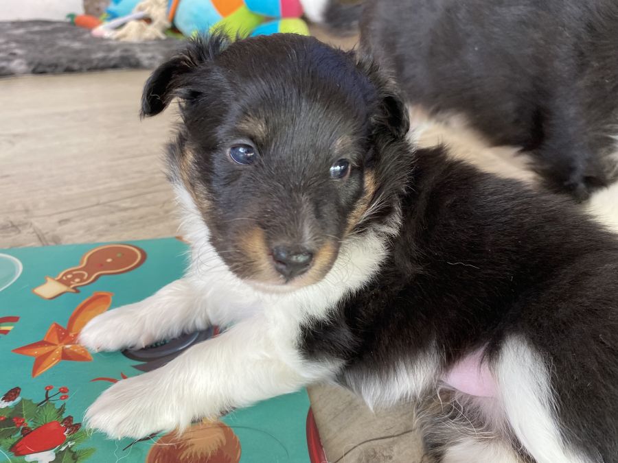 Chiots lof berger des shetland tricolores et bleus merle nés le 31 décembre 2024.