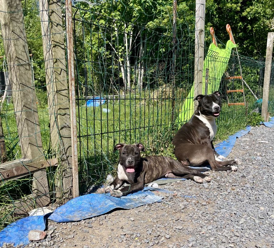 Ils sont élevés en famille ( enfants en bas âges) avec d’autres staff, des bullys, des chats, poule, cochon d’Indes.