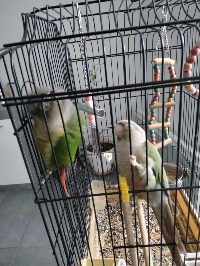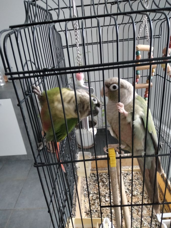 Bonjour, Je mets en vente mes deux jeunes conures, un mâle et une femelle : une conure ananas et une conure hypo...