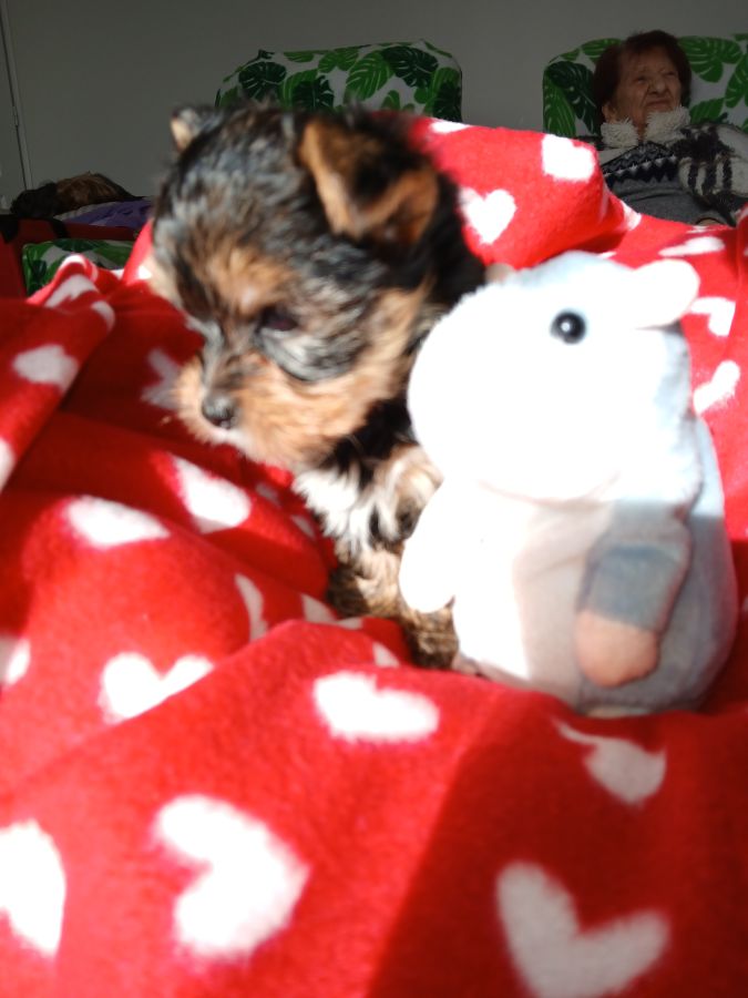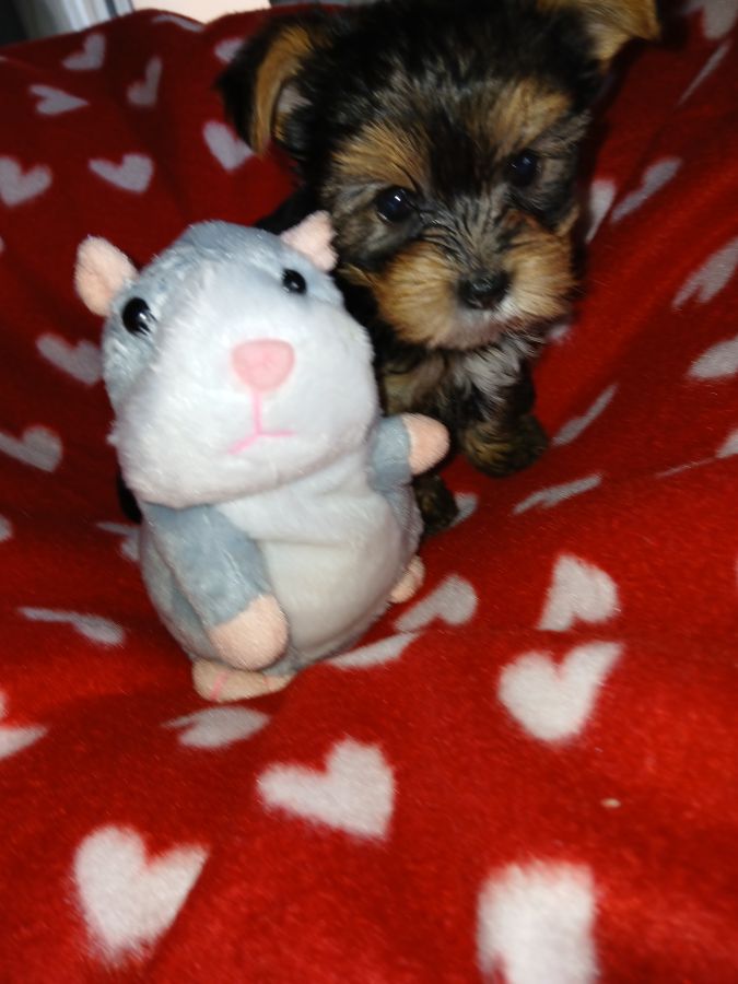 Élevée en famille avec d'autres yorkshires, c'est une petite pleine de vie équilibré