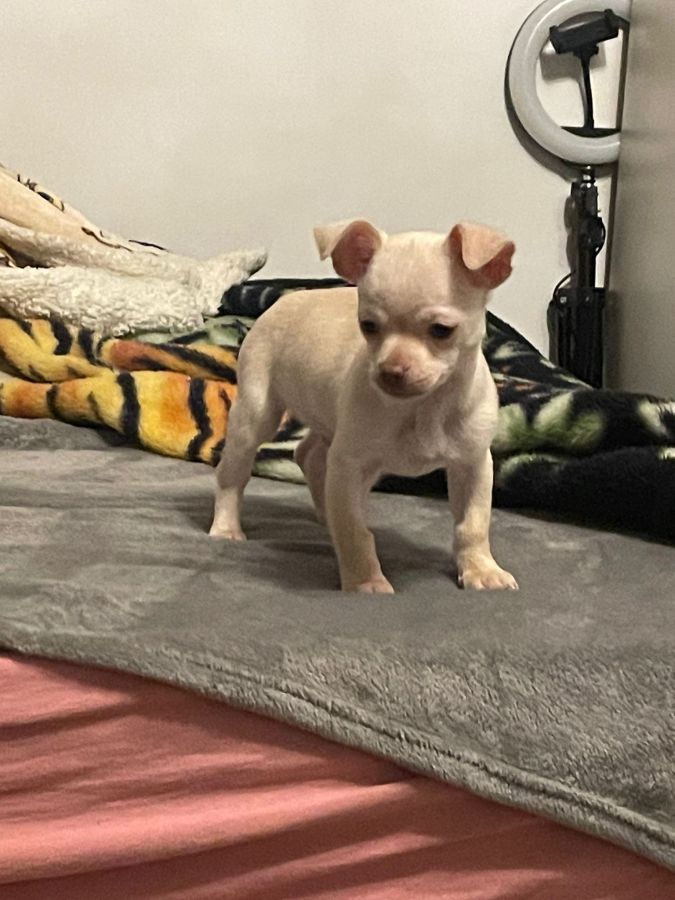 1 chiot chihuahua poil court blanc beige  né le 27/11/2024. Câlin et joueur