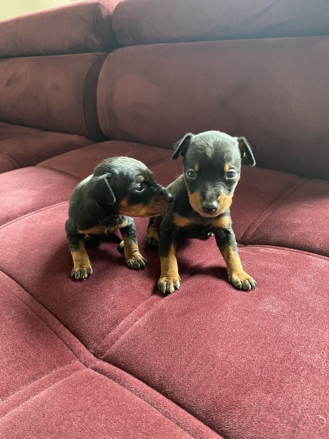 Réserver dès maintenant 2 magnifiques chiots pinscher nain 1 mâles et 1 femelle noirs et feu nés le 20/01/2025 parents inscrits au LOF. Ils seront disponibles à partir du 20/03/2025 A la vente ils seront pucés, vaccinés et vermifugés avec certificat vétérinaire de bonne santé.