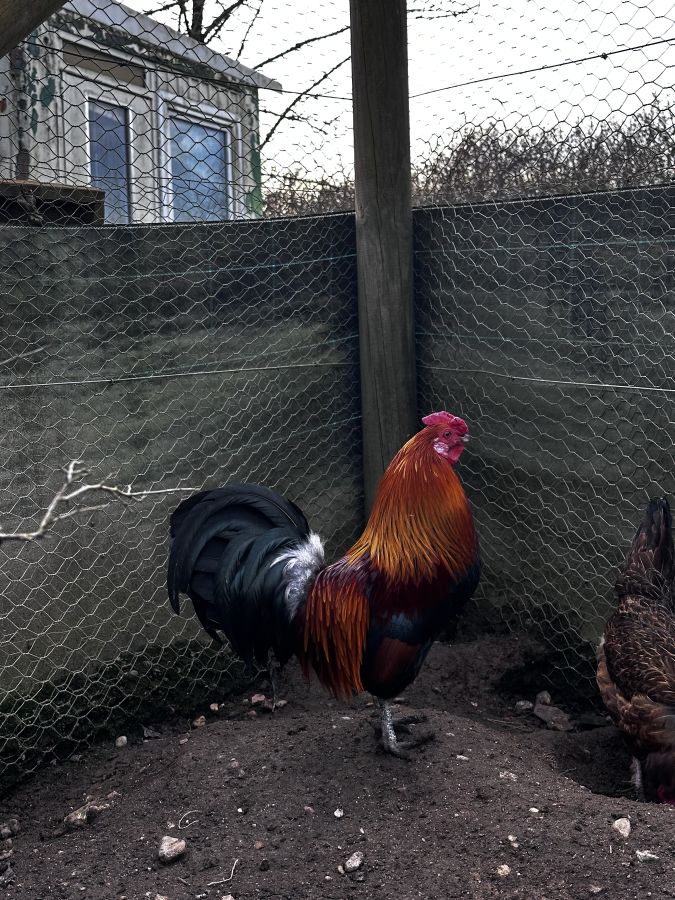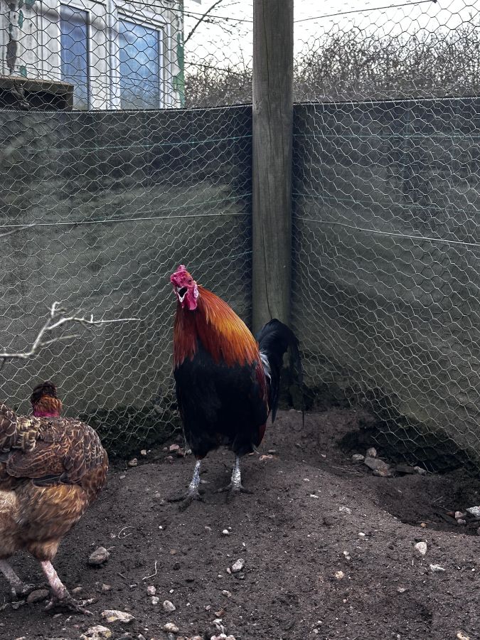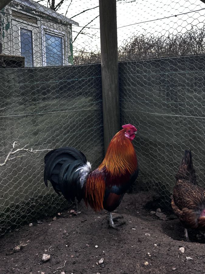Coq gaulois. Très bonne santé, n’a jamais eu de problème, bon reproducteur