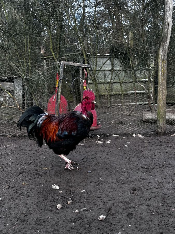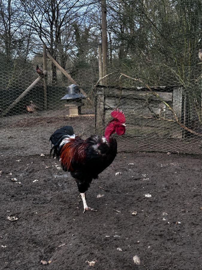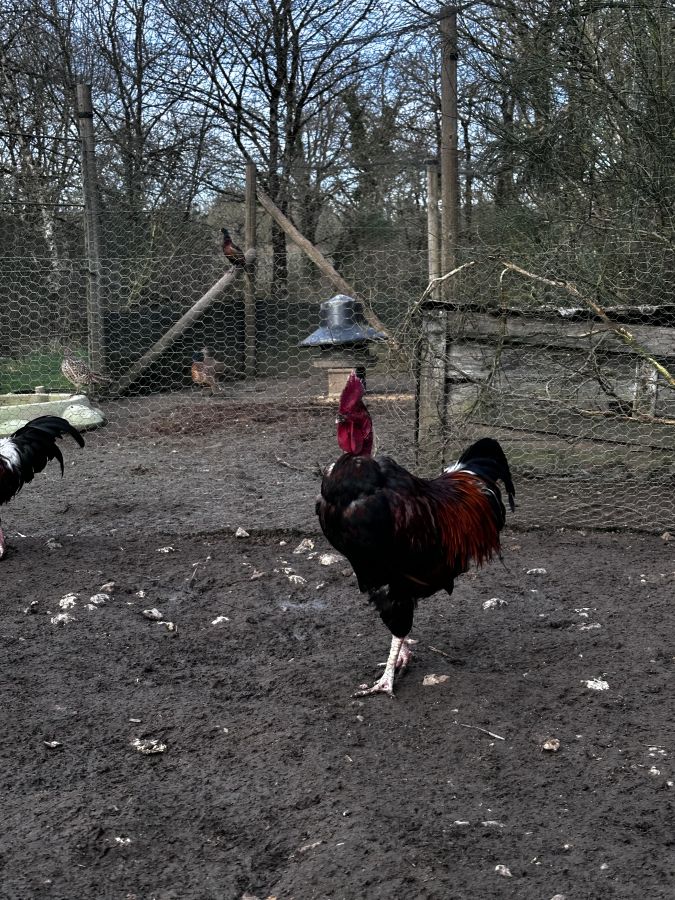 Coq gaulois. Très bonne santé, n’a jamais eu de problème, bon repro...