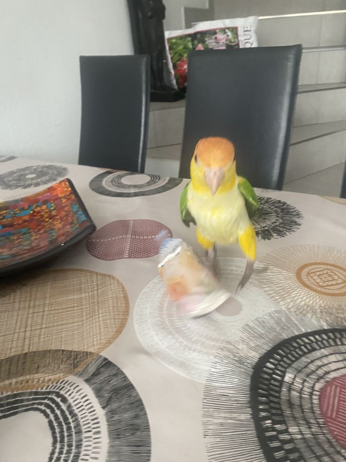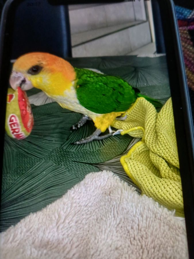 Adorable caïque âgé de 5 mois, élevé avec soin et habitué au contact humain. C’est un oiseau très joueur, curieu...