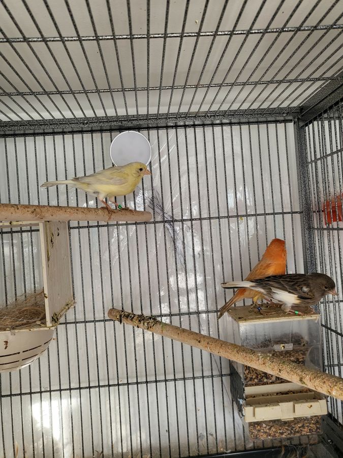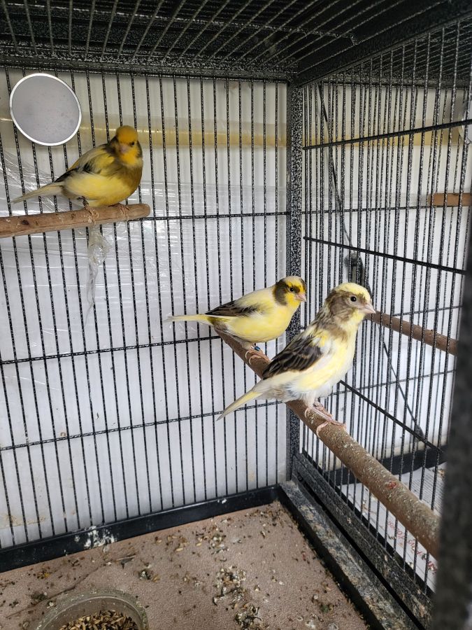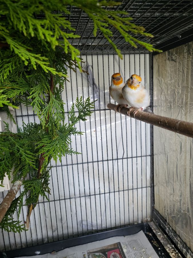Un couple chardonneret mutation brun pastel porteur tête blanche 250€ pièce.