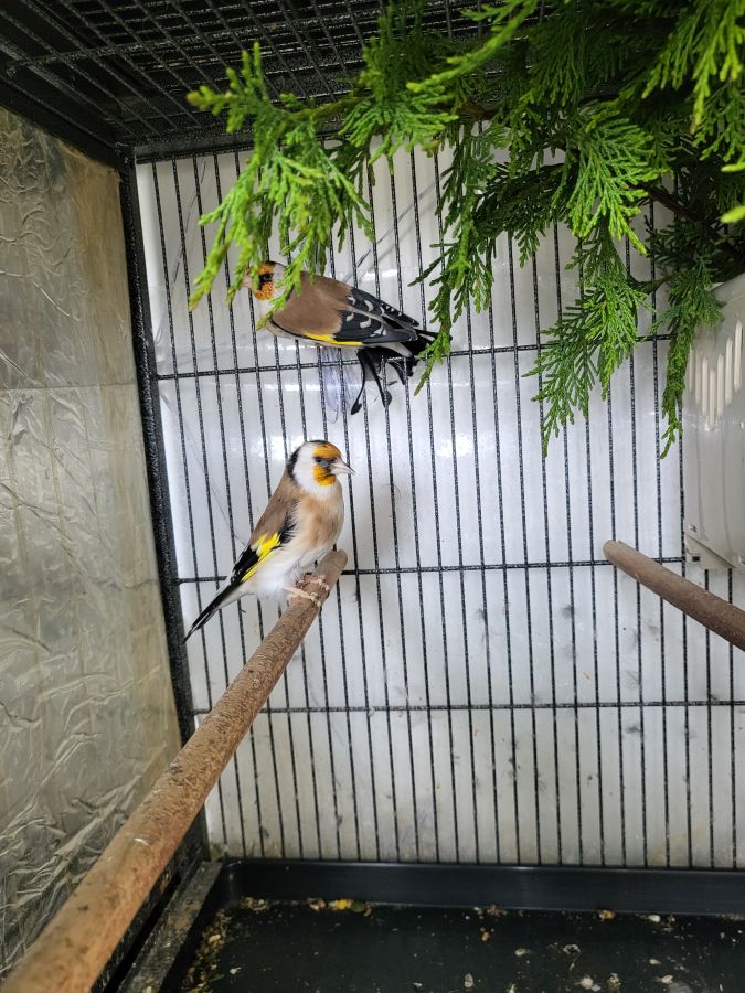 Un couple de chardonneret mutation couleur classique porteur brun pastel 230€.
