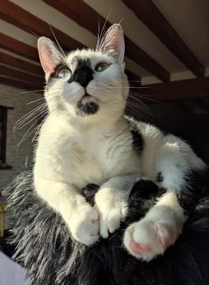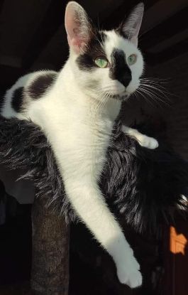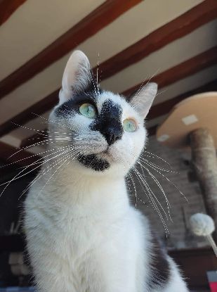 Azraël est plein de vie, toujours partant pour jouer. C’est un chat très joyeux et il adore faire le clown. Il sait rester calme et aime regarder par la fenêtre durant des heures, installé sur son arbre à chat. Il est très gourmand et aimerait bien qu’on partage notre assiette avec lui, il joue alors de tout son charme.