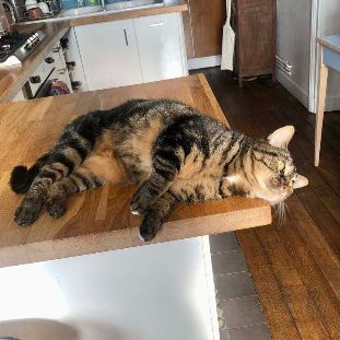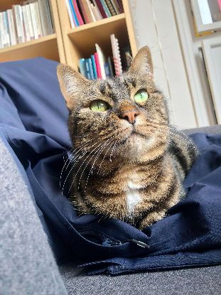 Très soignée, calme, sociable, et adorable avec l’humain, aime la douceur, dormir contre son humain, et les caresses.
