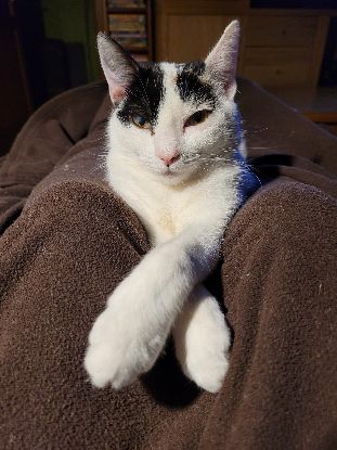 MIA est née le 30/04/2023. MIA est une junior issue d’une fratrie de 7 frères et sœurs. Elle vit en famille d’accueil depuis ses 2 mois avec deux de ses sœurs car elles nécessitaient des soins quotidiens pour leurs problèmes aux yeux. MIA a reçu un traitement pour un «voile» sur son œil droit depuis ses 2 mois. Aujourd'hui, son œil reste un peu «terne» mais cela ne l’empêche pas d'être dynamique et joueuse. MIA est très câline et sociable, il suffit de s’asseoir sur le canapé pour qu'elle vienne se coucher sur vos genoux dans l'attente de caresses avec, en retour, des ronrons assurés. Elle recherche la compagnie des humains et pour s'isoler un peu, va faire la sieste sur le lit du fils de notre famille d'accueil.