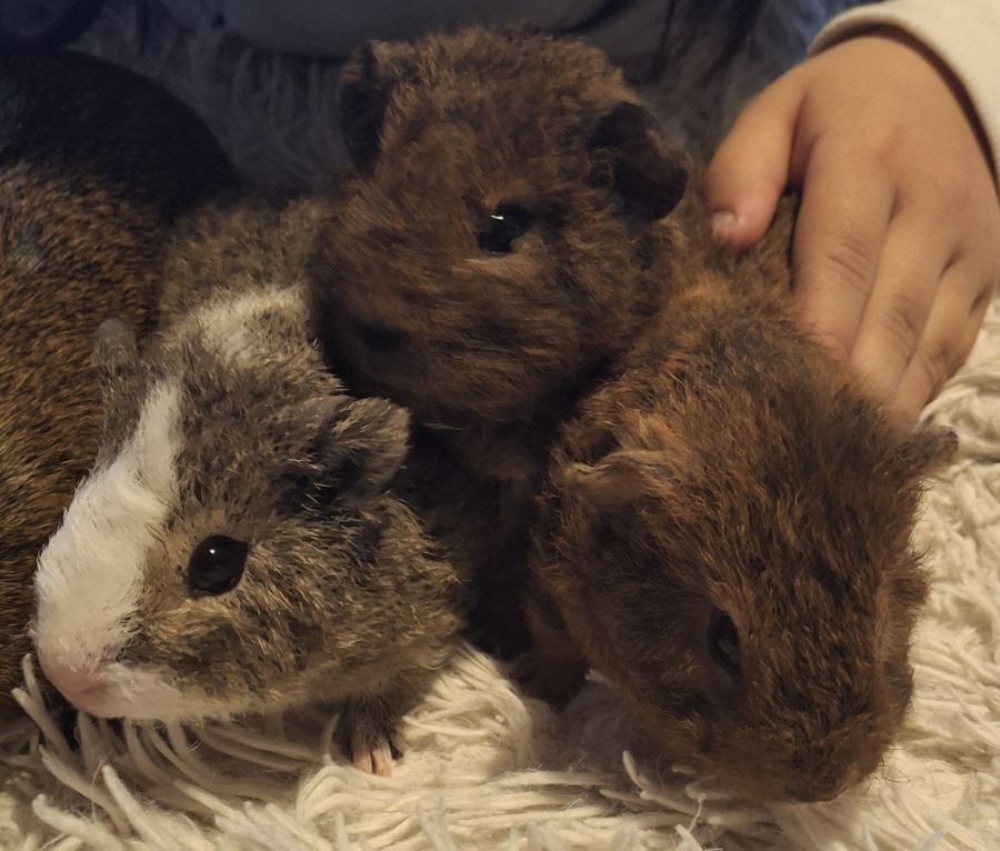 Notre châtaigne a donné naissance à trois bébés cochon d inde.