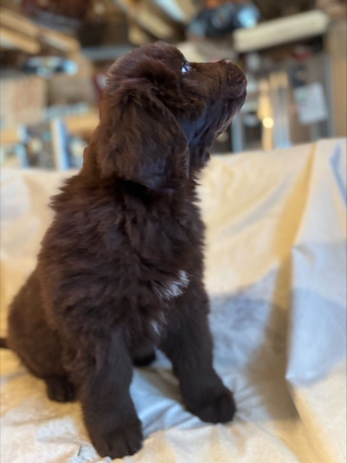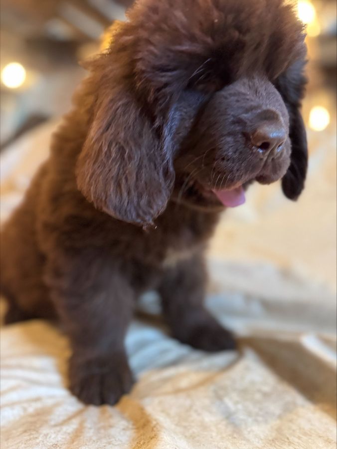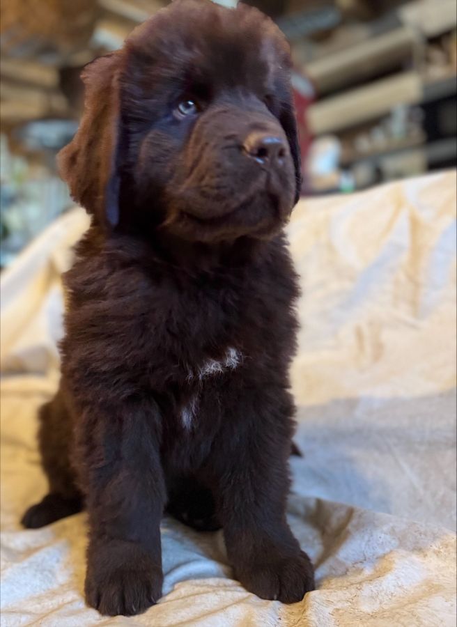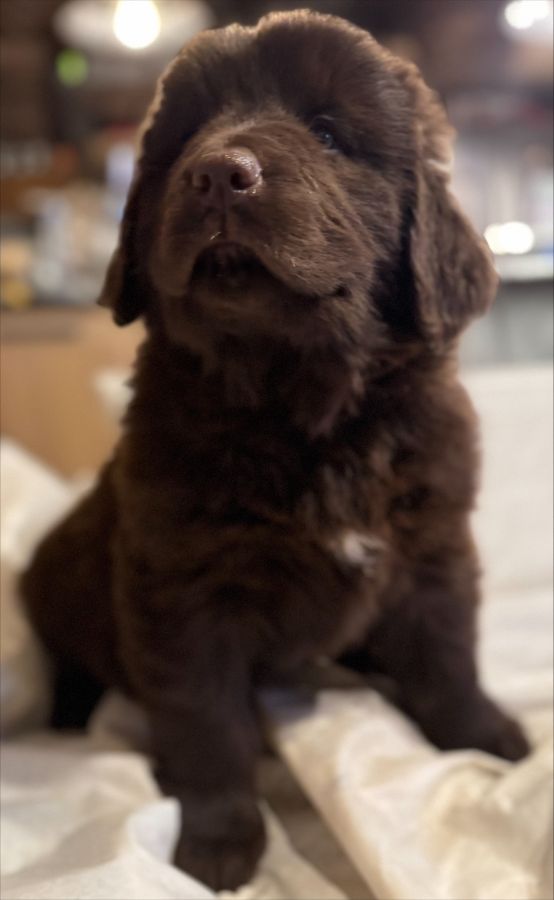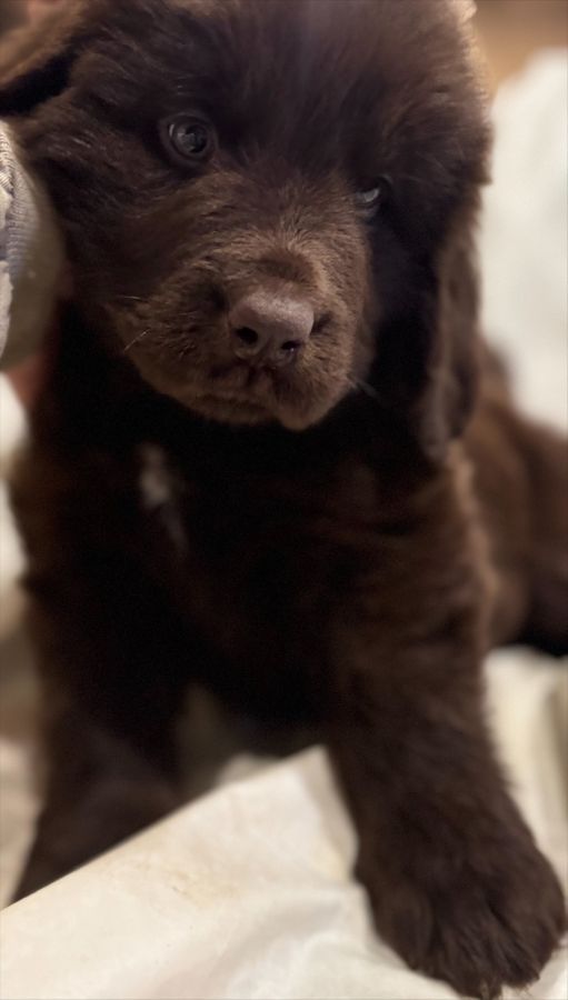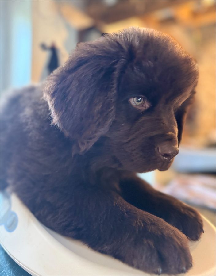 Tiha inscrite sous le numéro 250269610361814, notre superbe femelle Terre-Neuve, de 2 ans et demi, à la robe chocolat a donné naissance à une magnifique portée de bébés Nours, nés le 26 janvier 2025.