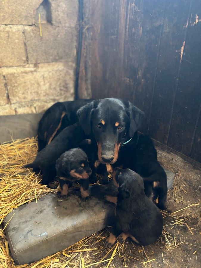 Voici 7 chiots beaucerons, non LOF mais pur-race, qui recherchent leur famille pour la vie. Ils sont nés le 14/03/25