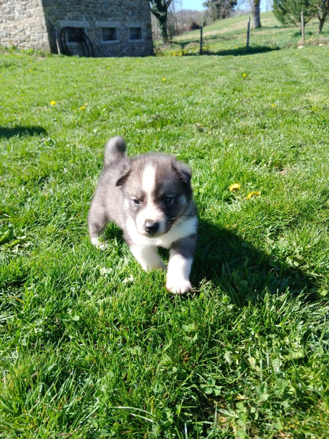 Le papa, Ulva K'eyush De La Meute Des Terres Sauvages est un mâle LOF super câlin qui veille admirablement sur toute la famille.