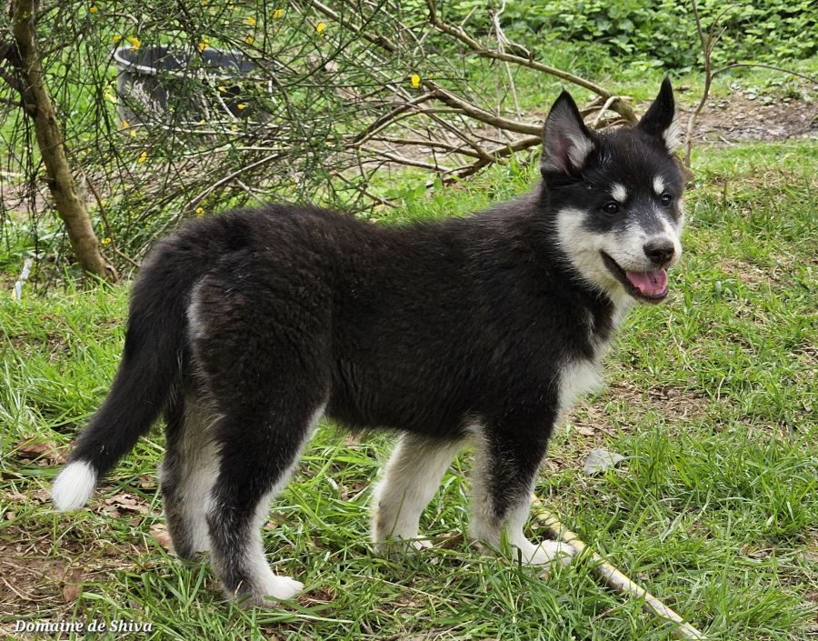 Pomsky F3b, taille standard (+/- 14/17kg), poils polaires (et une poils fluffy), yeux bruns.