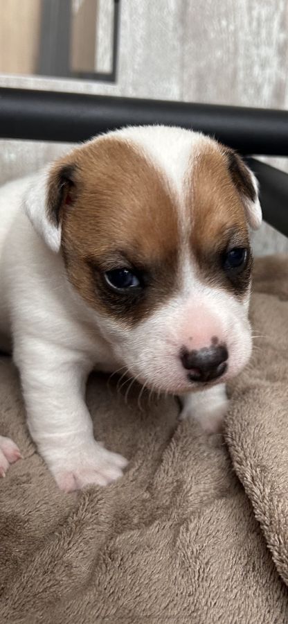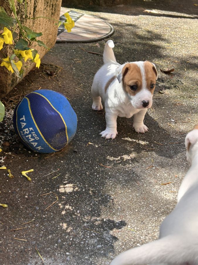 Magnifique chiot mâle jack Russel née le 15 mars disponible le 15 mai il sera puce vacciné et vermifuge très sociable habitué aux enfant ,chien,chat !