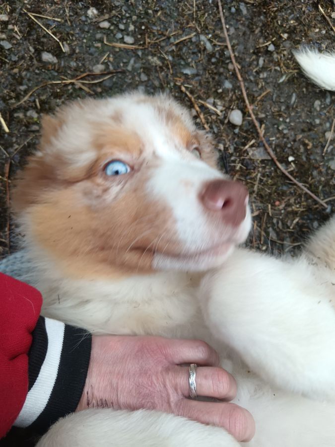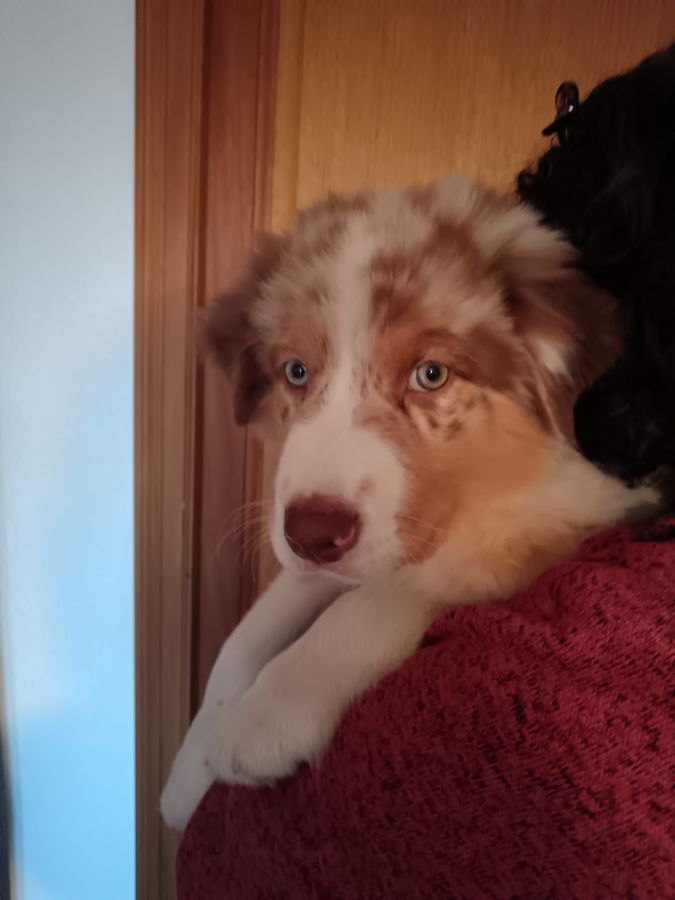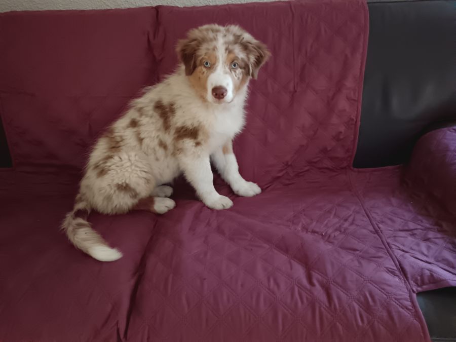 Disponible dès maintenant 1 chiot LOF, mâle rouge merle, queue longue.