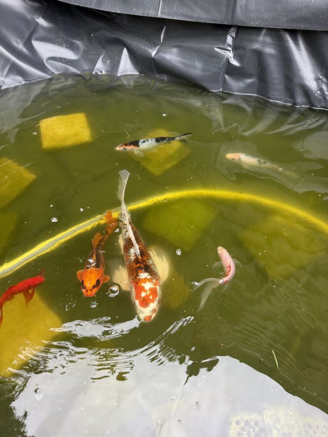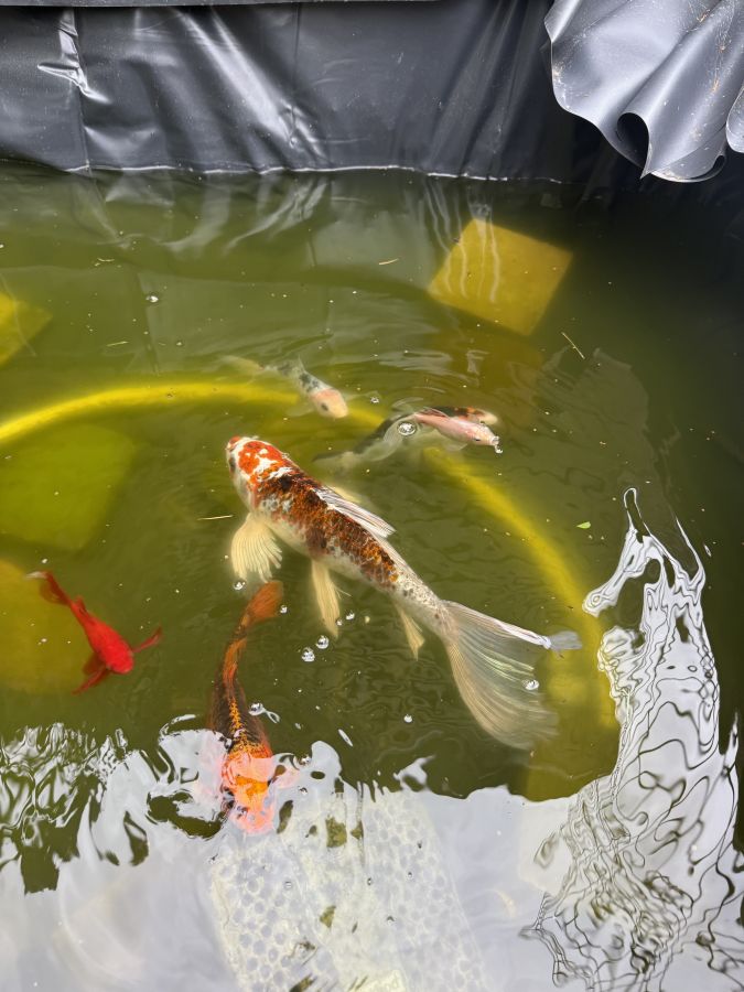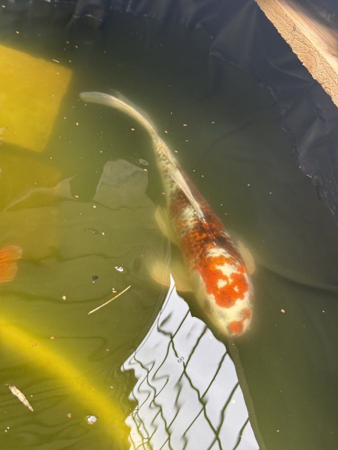 Vends carpe koi cause bassin trop petit la carpe koi et multicolore en pleine santé mesurant 35 cm un beau bébé