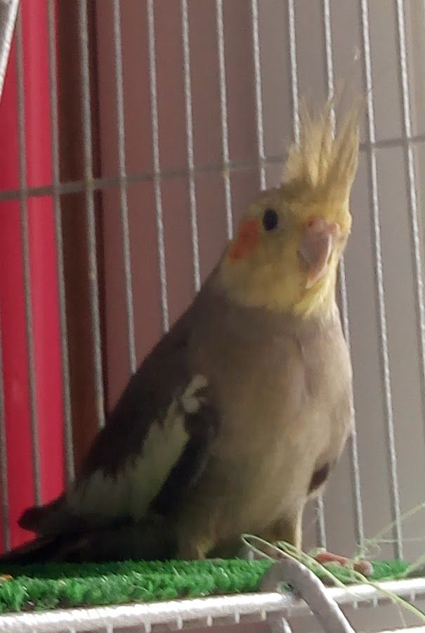 vend mes deux callopsittes car, j'ai deux chats, qui sautent sur la cage, et je ne veux pas qu'ils blessent les oiseaux...