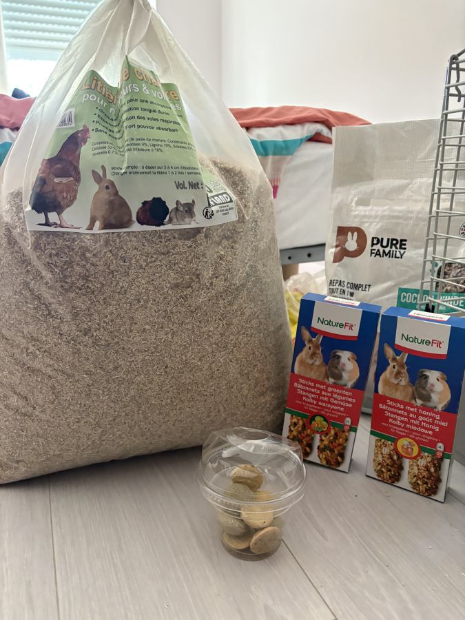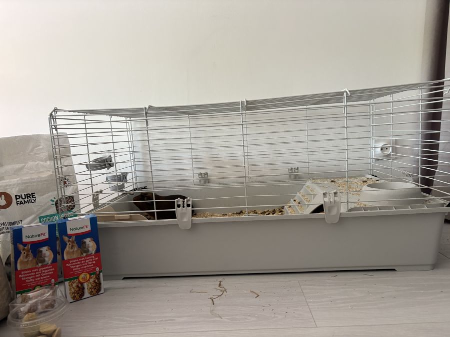 Vend deux cochons d’Inde ainsi que sa cage avec un biberon d’eau neuf le reste de la litière (encore pour une bon mois) plus stick de gourmandise neuf x4 jamais ouvert et un reste de petit gâteau à ronger qu’ils raffolent.