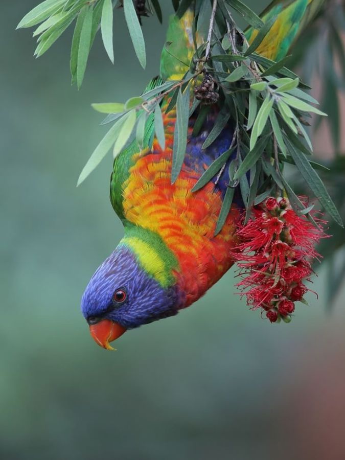Je vends Rio, un magnifique Loriquet Arc-en-ciel mâle âgé d’un an.