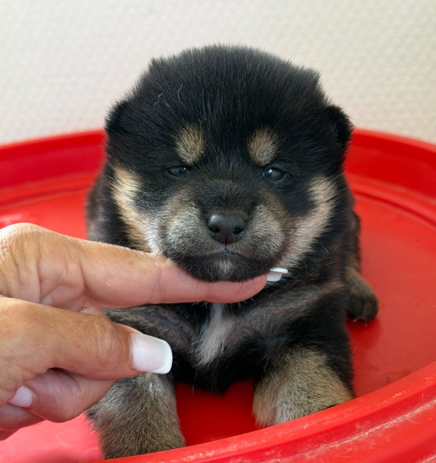 Nés le 28 avril 2025, 3 chiots shiba inu LOF & 2 femelles noir et feu (1 est disponible à la réservation ) et 1 mâle sésame (réservé) - Prestigieuses origines.