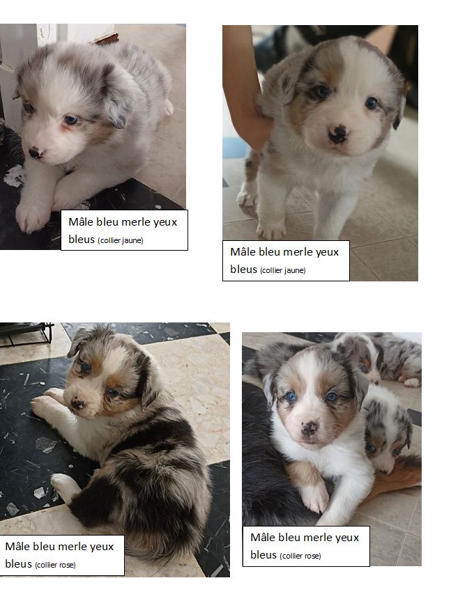 -	Male 2 et 3 : Bleu merle yeux bleus