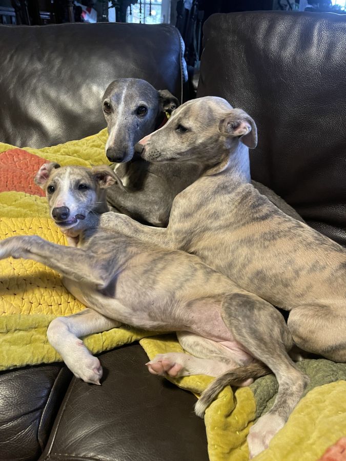 Quatre. Petits bébés Whippets, né le 17 février élevé en famille.