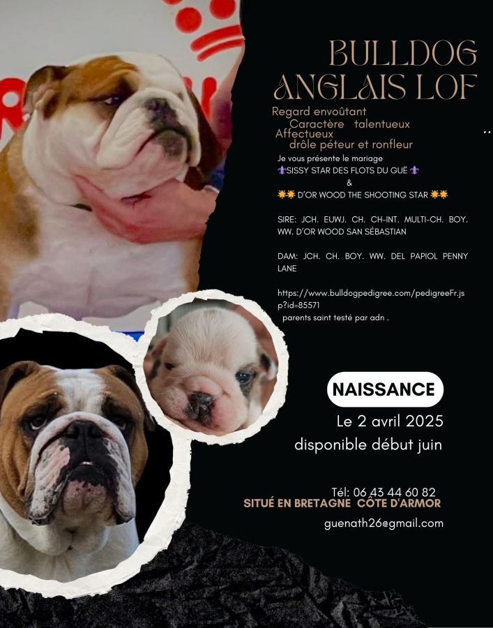 Les deux parents sont testés indemnes des maladies génétiques liées à la race.