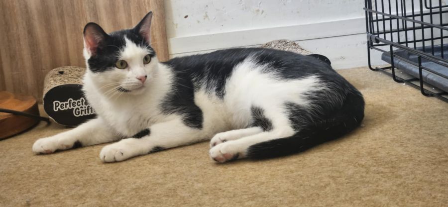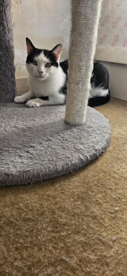 VAREKO chat mâle poils court blanc et noir, âge 2 ans , c'est un chat adulte commence à adorer de plus en plus les caresses et ronronne , il a été sauver de la rue ,on pense qu'il a vécu dans une famille ,propre ,sociable avec congénères chats ,chiens sur présentation