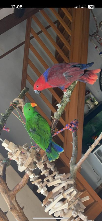 Propose couple eclectus reproducteur mâle eam 5 ans femelle apprivoiser 4 ans tous les deux sont bagués première couver 2jeune sur 2oeufs me contacter pour plus d’informations
