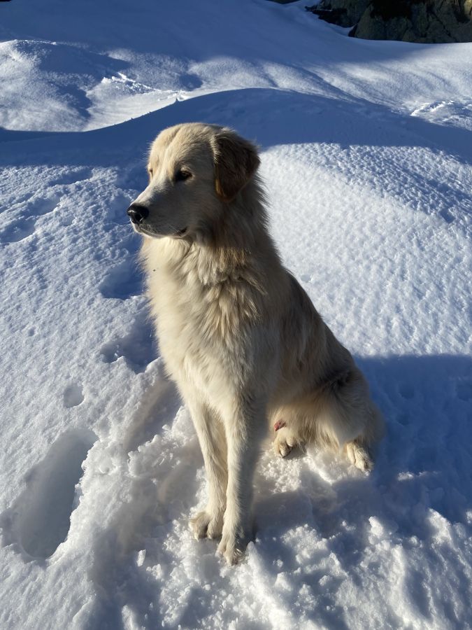 Pako est un jeune Patou sociable, doux et protecteur, fidèle à la nature de sa race. Très attaché à l’humain, il est à la fois gentil, proche, et naturellement vigilant. C’est un chien équilibré, bienveillant et affectueux.