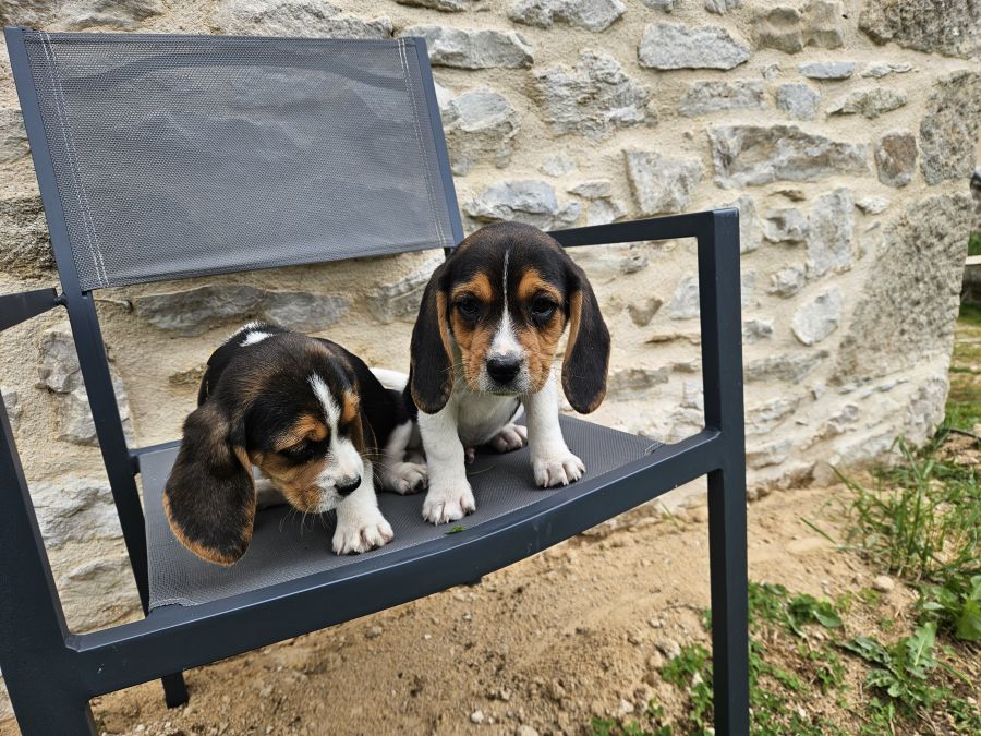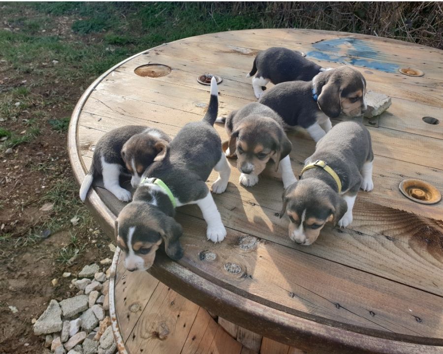 Nous mettons en vente 4 petits mâles beagles qui auront 2 mois le 30 juin (disponible à partir du 5/6 juillet). Ils sont issus d'une portée de 7 chiots dont 3 sont déjà réservés.