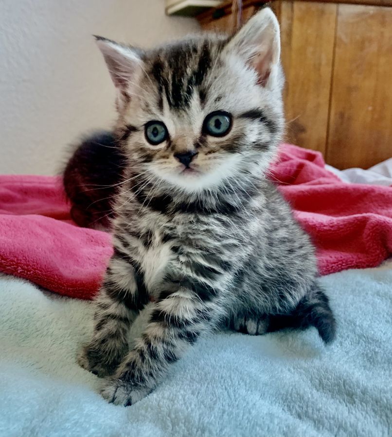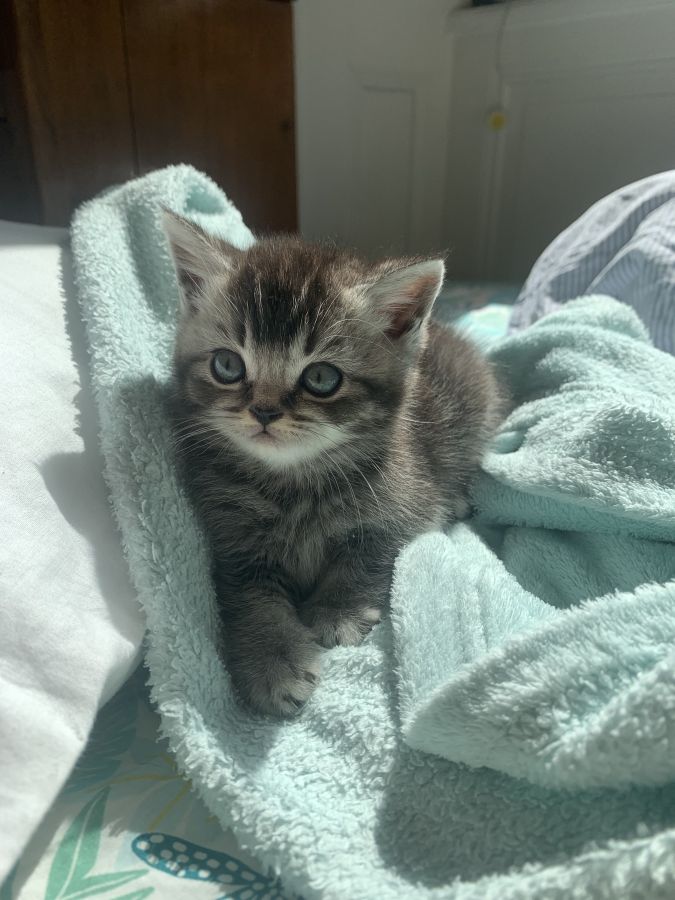 Chatons British shorthair pure race nés le 28 mars. Ils seront disponibles fin juin, pucés, vaccinés, avec le pedigree et avec le certificat de bonne santé fait par le vétérinaire. La maman est une British shorthair avec pedigree couleur lilac. Le papa est un British shorthair avec pedigree black silver tabby blotched a de très belles origines.