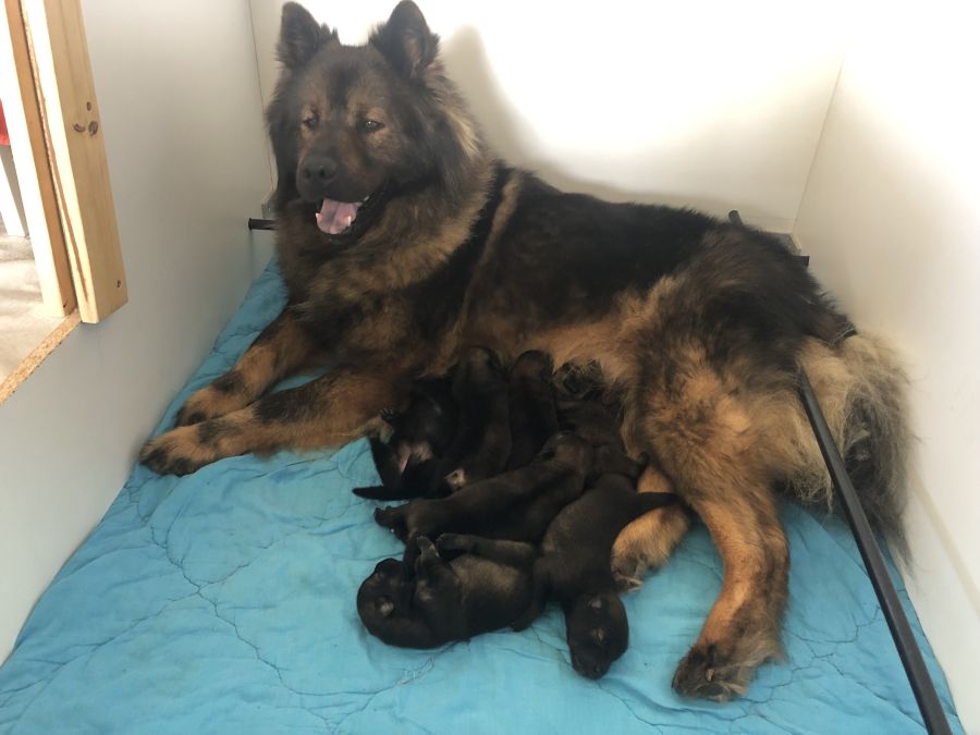 Singha et Stark sont heureux de vous annoncer la naissance de leur 7 petits nounours. C'est une portée de 4 femelles et 3 mâles. Leurs couleurs sont à déterminer dans les jours à venir (ils sont en train de s'éclaircir) mais probablement fauve charbonné (maman ) et sable charbonné (papa). Singha est sociable avec tous les humains, chiens et chats, elle est calme , gourmande et n'aboie que très peu. Stark est également sociable et calin. Les chiots sont élevés dans une maison avec un grand jardin et au contact de chiens, chats et enfants. Ils seront vaccinés, pucés et sociabilisés avant leur départ. Tous les tests pour les deux parents ont été faits (empreinte ADN, dysplasie coude et hanches (A), luxation de la rotule et maladie de Dandy Walker). Les chiots seront disponibles à partir du 17 juillet ( 8 semaines) mais nous recommandons à partir de début Aout. Nous pourrons les garder un peu plus longtemps si besoin ( après les vacances). Singha sera heureuse de vous présenter ses chiots. Paiement en 2 fois possible, prix de vente 1400 euros. Je reste disponible par mail ou téléphone.