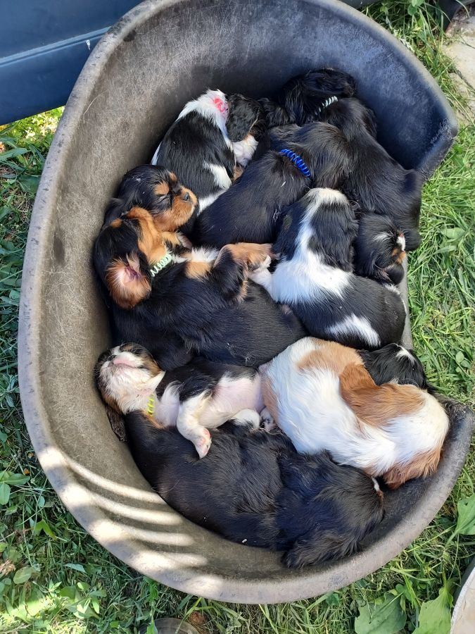 Disponible cavalier king charles spaniel ,portée née le 31 mai 2025 ,dominance noir, avec du blanc et tous du marron, donc trois couleurs ,reste 5 mâles , les parents sont visibles et ont des origines, mais non lof , ils sont  vaccinés, le rappel  est fait ,pucés, avec certificat de santé fourni par le vétérinaire ,ils sont disponibles de suite Visibles à Pradelles 43420.