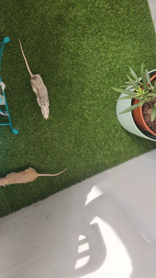Je donne 2 petites rates Rémi et Emil, (Merci Ratatouille 🤣) d'environ 8 mois.