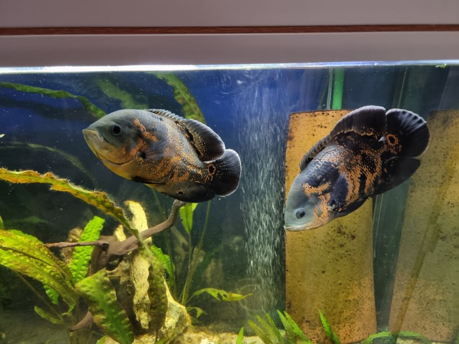 AV deux oscars red tiger, qui se sentent à l'étroit dans mon 350 L, cherchent une nouvelle maison d'au moins 600 L. Ils font environ 20cm, ils ont 1 an et demi et l'un d'eux est borgne. Le tarif est pour les 2.