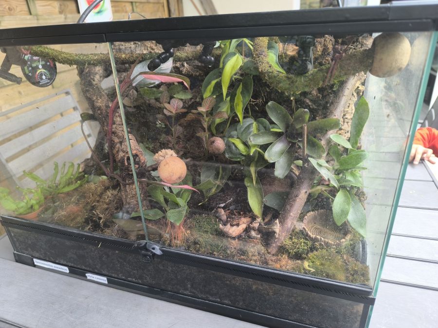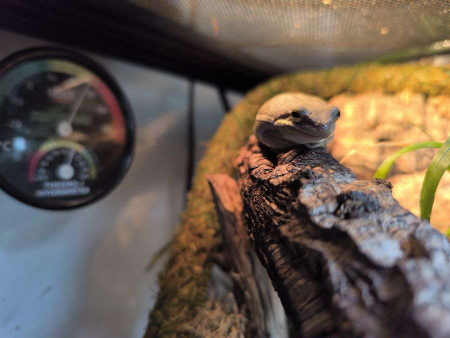 Vend Hyla cinerea avec beau terrarium tout équipé avec végétation.