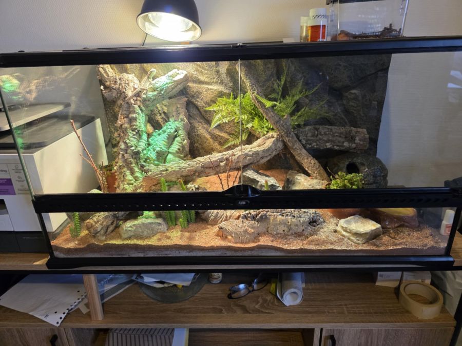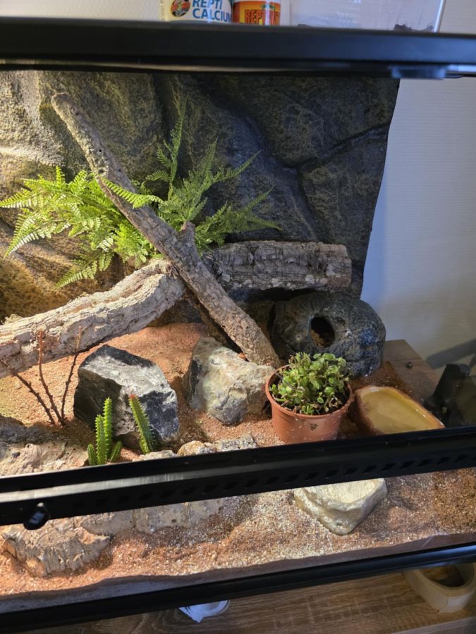 Bonjour, je mets en vente mon pogona ? Qui est âgé de 3 mois et demi ? Sexe inconnu car trop jeune. Je le vends avec mon terrarium. Qui contient. Tout le nécessaire. Thermostat. Tapis chauffant lampe UV. grillon, bois à grillants, nourriture et haut pour grillon. Pour plus d'informations n'hésitez pas à nous contacter sur nos numéros de téléphone. Avenir récupérer sur place.