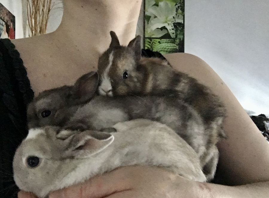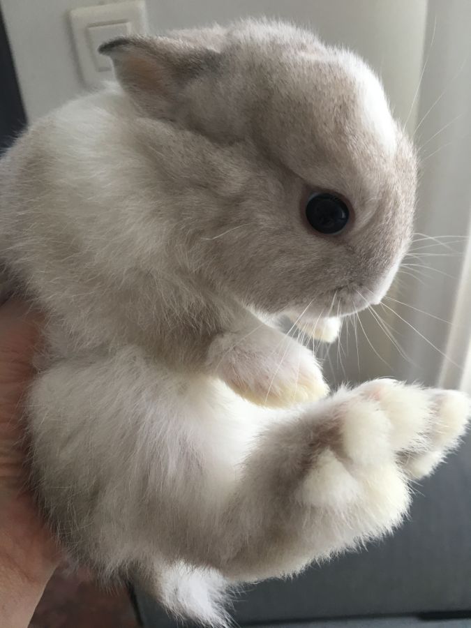 Je vous présente cette adorable bébé lapine nain, pure race angora qui va sur ces 3 mois !