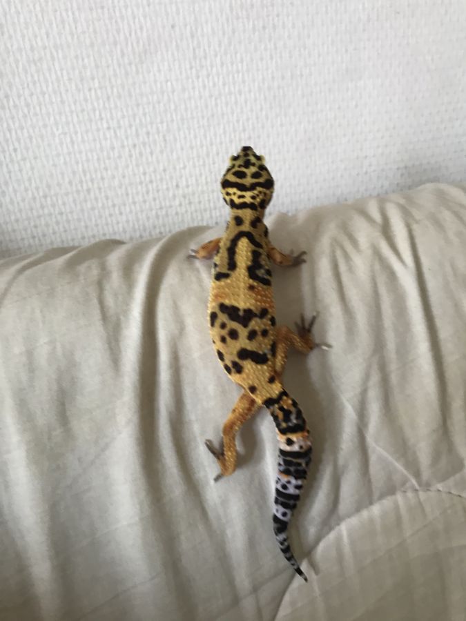 Femelle gecko léopard d’environ 3 ans d’âge, s’alimente bien avec une forte activité la nuit ( signe de bonne santé )