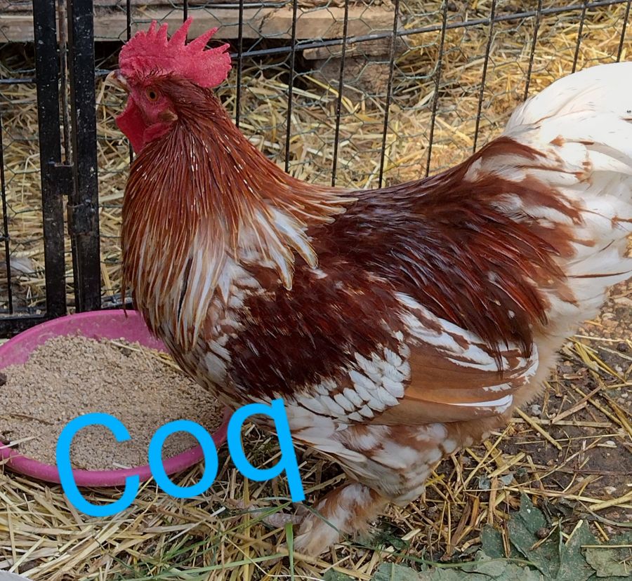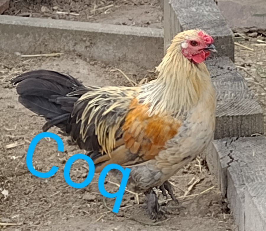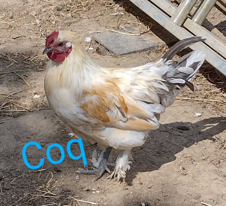 Vends coq né en juin 2024, un roux et gris, le deuxième noir bleuté...