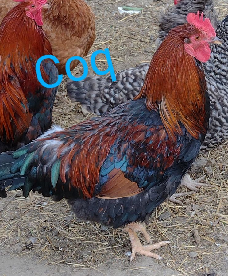 Vends coq né en juin 2024, un roux et gris, le deuxième noir bleuté, or...cause trop de naissance de coq 5€ l'un...