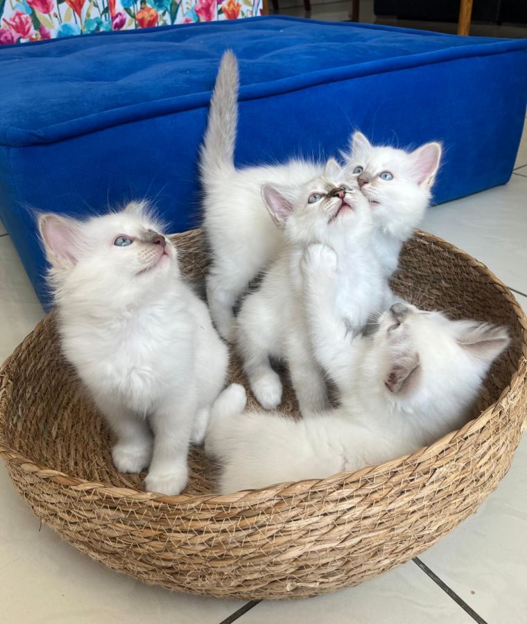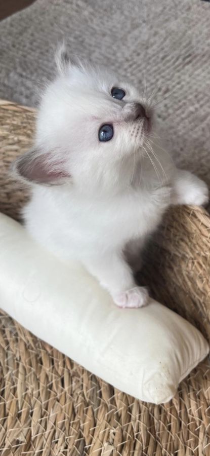 A réserver 👀, 4 magnifiques chatons aux yeux bleus, pure race Sacré de Birmanie fin avril 2025, 3 mâles et 1 femelle, de couleur Lilac Tabby, chocolat Tabby et blueTabby 😁