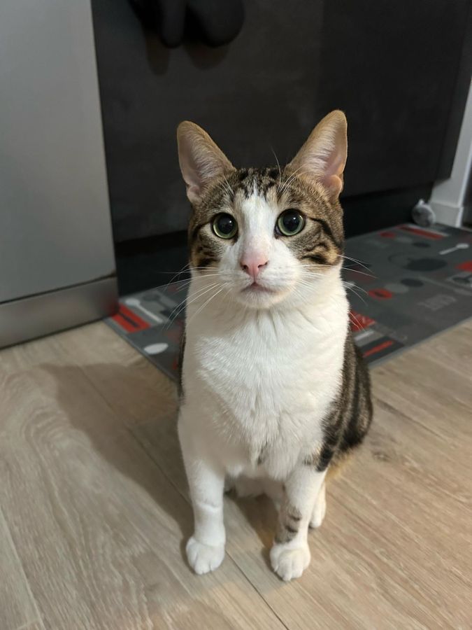 Ce chat est pucé et vacciné, dernier vaccin effectué le 31 mai 2025.