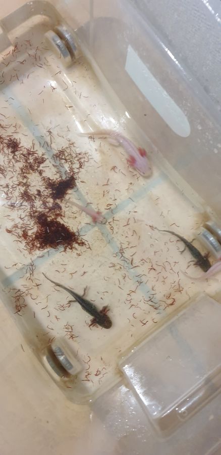 Jolis axolotls de 10 a 15 cm non sexuable pour le moment les roses 24 euros et les noirs 35 euros
