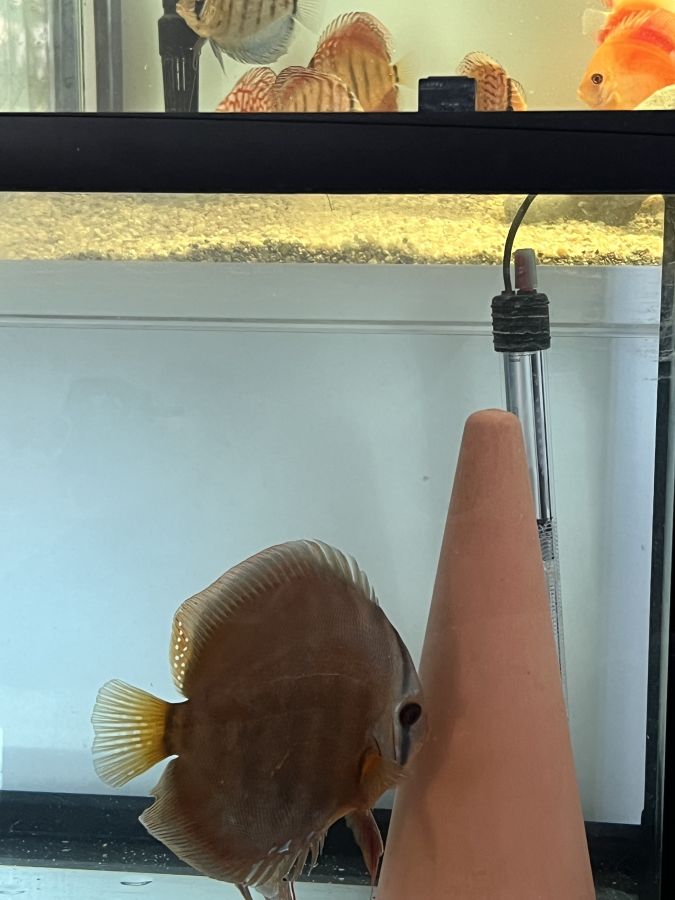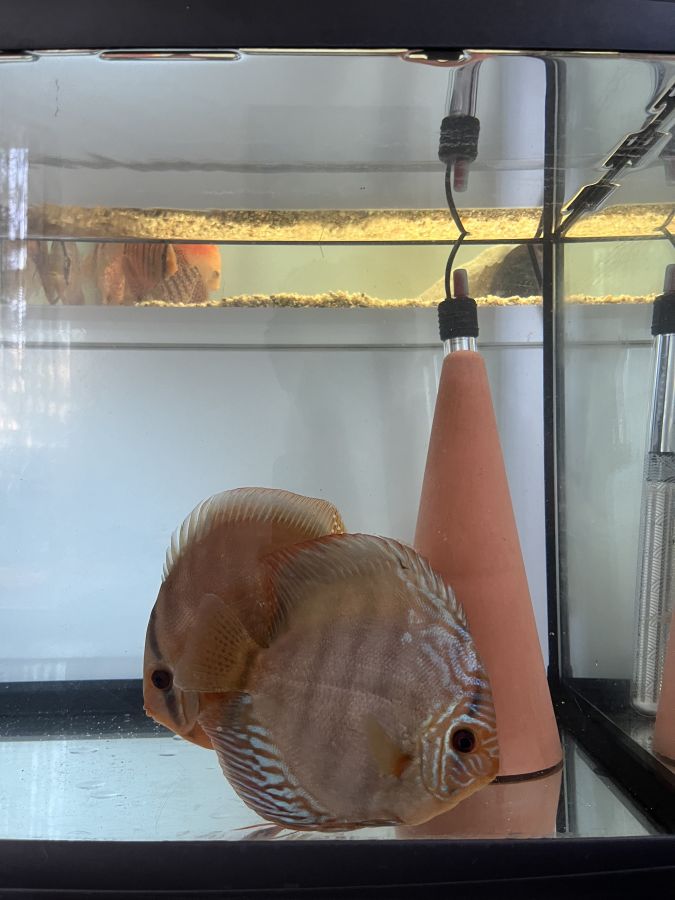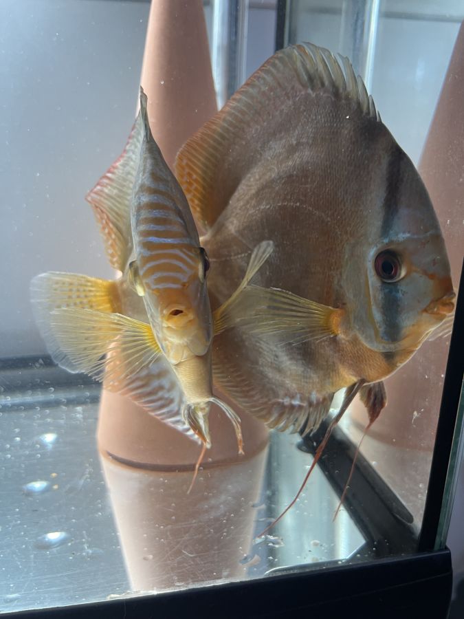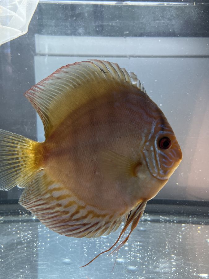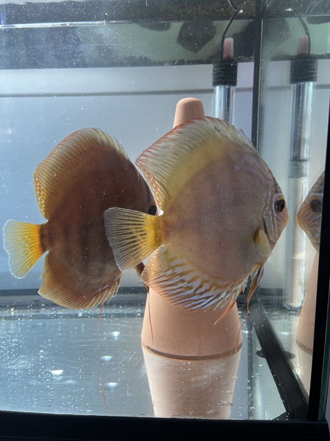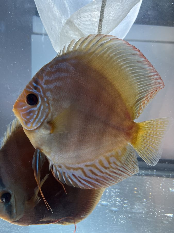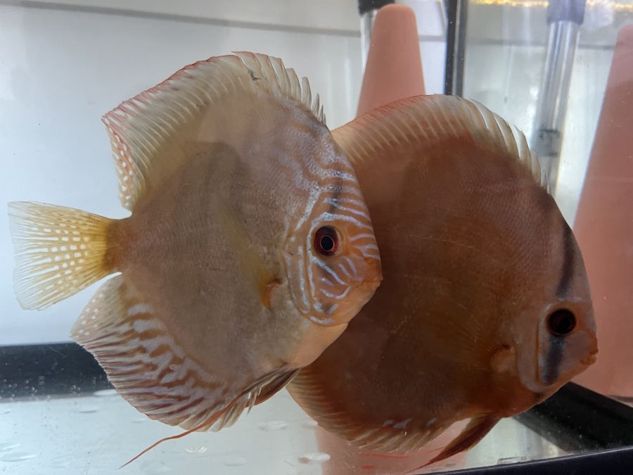 Discus élevés à la maison, issus de parents turquoise rouge et léopard. Environ 7 à 9 cms. Remise en main propre...
