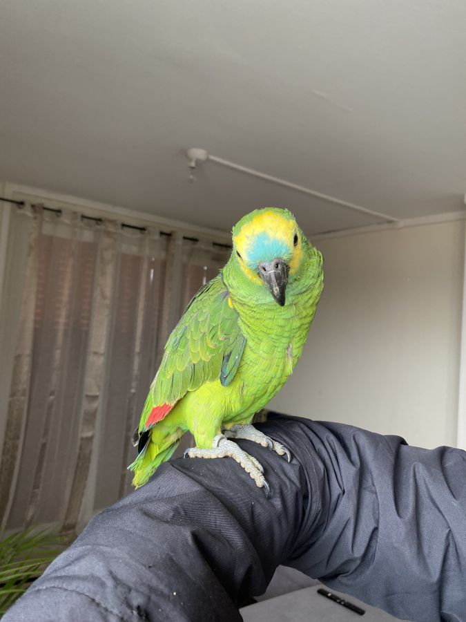 Il s’appelle Rio il a 2 ans née en 06/2023 joueur habitué à la vie en famille il aime se poser sur la tête et épaule.