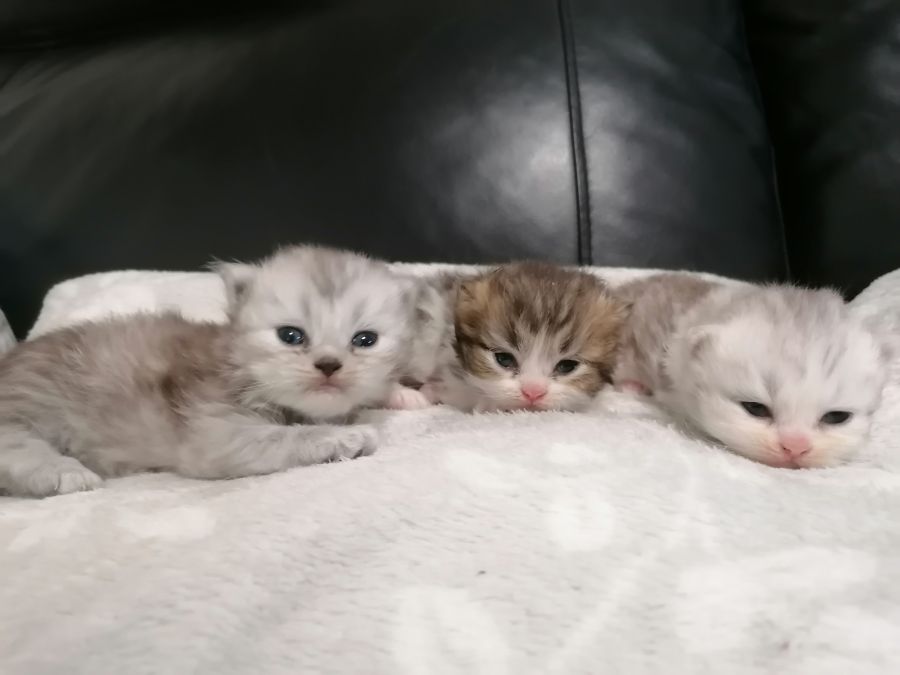 3 mâles et une femelle persan chinchilla et brown tabby pepper